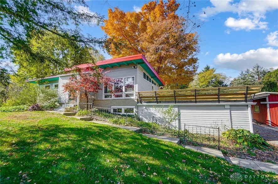 Stunning 5-acre mini farm, in the Yellow Springs countryside (& school district!) The mid-century home cuts a silhouette of style and sophistication, with remarkable views from every room. Step inside to a living room full of light, vaulted ceiling, and natural wood accents. This wraps around a renovated dining area with a picture window, storage buffet, and opens onto an expansive rooftop terrace for entertaining or al- fresco dining. Newly remodeled kitchen/dining room blend granite & quartz countertops, gorgeous tiles, touch-to-open cabinetry, high-end appliances including French door refrigerator, induction range & speed oven/microwave combo. From living room access the first bedroom, the study, and a full bath featuring handmade Epro tiling in an earthy artisanal style, and a jetted tub. The primary bedroom, added in 2008, is an expansive sanctuary for rest & relaxation, boasting bamboo floors, adjustable lighting, and walk-in closet. A screened porch off the primary suite has a Hot Springs spa and space for table and chairs (think morning coffee, a good book, listening to the birds.) This opens to the back lawn, a gentle swale and bottomland ideal for gardens & pastures along scenic Birch Creek. Within 2 miles of 3 nature reserves, a birders and nature lover s paradise! The surroundings inspired the artistic expression of a renowned potter who handcrafted ceramics in her professional studio spaces here. A kiln shed houses fully functional soda kiln. Additional exterior features: Contemporary 2-story pole barn. Peace of mind of a whole house generator and standing seam metal roof! Tons of flex space, including large semi-finished second story home office, a walk-out basement one-bedroom apartment, studio, home office or in-law suite with small kitchen or wet bar, full bathroom, a concrete root cellar, and a small gallery. Don't miss everything this rare find has to offer!