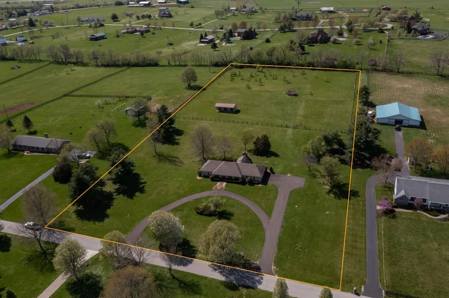 Leave your worries behind and come to The Country''! Enjoy the peacefulness of country living that is just minutes from the city. This all brick ranch home is sitting on 5 beautiful acres of land. Roughly the back 2.75 acres is one large paddock with a nice 3 stall barn with hang over. In front of the home has a freshly coated circle driveway and side entry garage. The charming 1 story welcomes you into a foyer and find a living room and dining room. They lead over to a very unique room with vaulted ceilings accented with beams with the kitchen and a family room focused around a wood burning fireplace. There are two full bathrooms and a half bathroom off the separate laundry room. There are so many things that you will enjoy. Whether you are enjoying your morning coffee or tea on the covered front porch, or on the back patio overlooking the fenced paddocks, it screams Kentucky. Call toda...