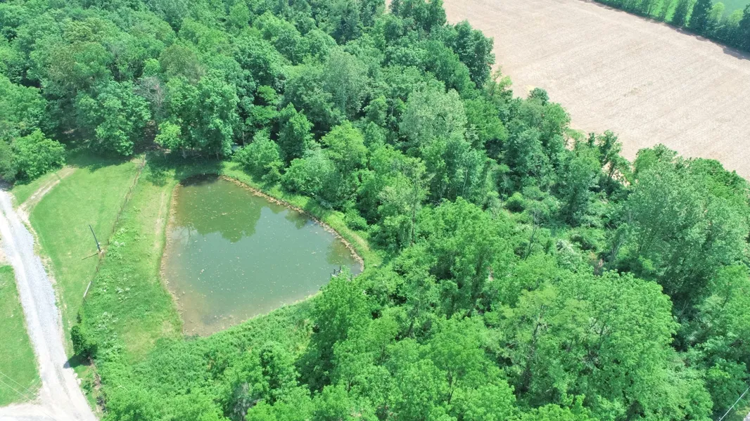 4.9 acres woodland with 18 x 19 pavilion with electric. Property has pond and stream running through it. 2 electric hookups for campers. Road frontage along Rt 75. Several old campers on the property. Excellent parcel for weekend getaway & camping.