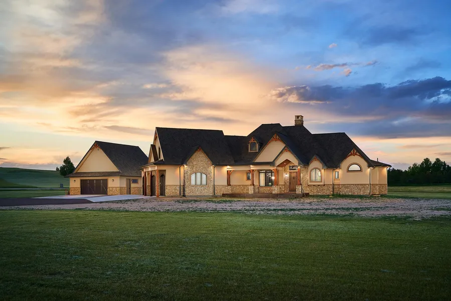 Ultimate quality & design! Stunning state-of-the-art home. Gourmet kitchen, lodge room w/impressive tongue-in-grove cedar ceilings. Master suite w/ grand en-suite bath. Sleeping porch/office, 4 bedrooms (each w/en-suite baths), 6 baths. Main-floor laundry, (1 of 3). Basement w/ theater room, fantastic family room, custom wet bar, 10' ceilings. 2 Mendota gas fireplaces, central air, in-floor radiant hot water heat. Three-car attached - heated + 4-car detached. 5 acres- edge of city. Landscaping. Covered deck.