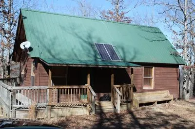 TERRIFIC CABIN with a 2nd story loft. Great room with cathedral ceiling, kitchen and dining area all finished in pine boards. Downstairs is a bedroom & bath. Wrap-around deck to the back which has a great view. Solar panels on metal roof plus well house with generator and battery set up. New central air system. On beautiful 5 acres next to hunting area.