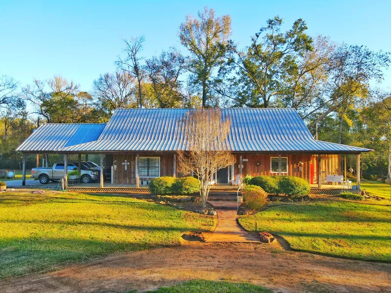 This beautiful 5-acre property offers a blend of timeless charm and natural beauty. The main house exudes the character of years gone by, with a classic farmhouse style, welcoming wrap around porches, and interior details that reflect its rich history. It sits among scattered hardwood trees, which provide shade and add to the peaceful, countryside atmosphere. A live creek meanders through the land, offering a soothing backdrop and enhancing the natural serenity of the property. The property provides 4 bedrooms and 3 bathrooms, in combination with the guest house.