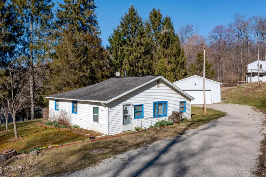Five acres in Licking Valley Schools with a ranch house, pole building, barn, & woods! House has 2-3 bedrooms, living room, kitchen (with stove & refrigerator included), & an enclosed front porch. There's a small room without a closet that could be used as a 3rd bedroom or a home office. There's a partial basement. Metal pole barn (24' x 40') has concrete floor, electric, & 960 sq ft. There's a second barn (24' x 30') with a lean-to & a horse stall. There's also a gazebo plus a concrete slab on the property that could be used for additional parking. 14-month Home Warranty offered. Please see Agent to Agent Remarks for more info.