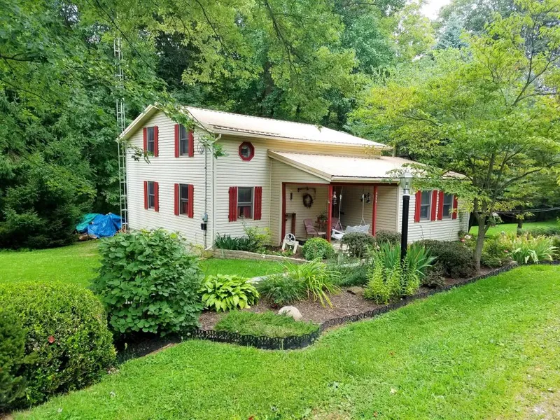Well maintained, custom home on 5+ Acres! Beautiful & private; park-like setting with mature trees & a stream! Large ''L'' shaped deck to enjoy your piece of nature! Home boasts SO much character with vaulted ceilings, built-in illuminated china cabinet, custom made interior doors & woodwork throughout! Kitchen has custom cabinets, solid surface counter tops with breakfast bar, and double wall oven! Gradual staircase, built specifically for the home, leads to a 2nd bedroom & 3rd bedroom/loft (wall was removed to make the loft; can easily be converted back)! First floor master with ''his'' & ''hers'' closets! Bonus: dog washing station in the basement! Double insulated & metal roof for efficiency.
