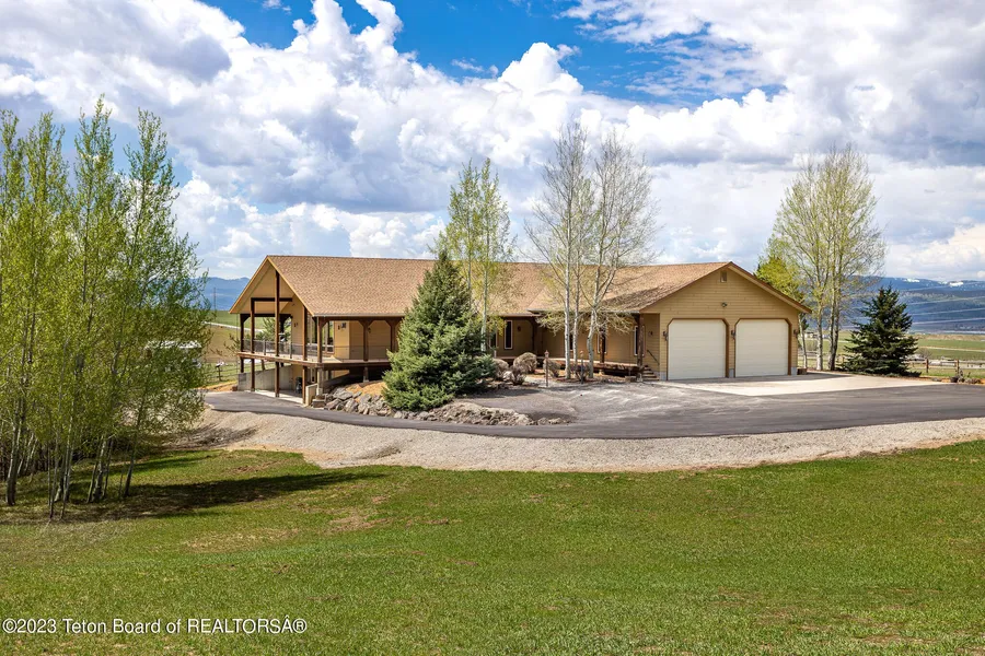 Your Wyoming mountain home awaits you. With 5 acres and beautiful views. This home is low maintenance with mature landscaping and drip irrigation. The wonderful wrap around deck. There is a asphalt driveway to both levels of home. The home has oversized Saltillo tile on the main level with custom propane fireplace and a one of a kind mantle. There are custom bar stools surrounding the kitchen island. There is a built in wet bar and formal dining with murano glass chandelier and built in hutch. The garage is oversized with shop and tools! Basement is set up for guests with 2 bedrooms, full bath and living area. There is a 16 X 16 closet off the exercise room. Some furnishing will go with the home. Extra 5 acres (L 5)with house at 1,675,000.00.