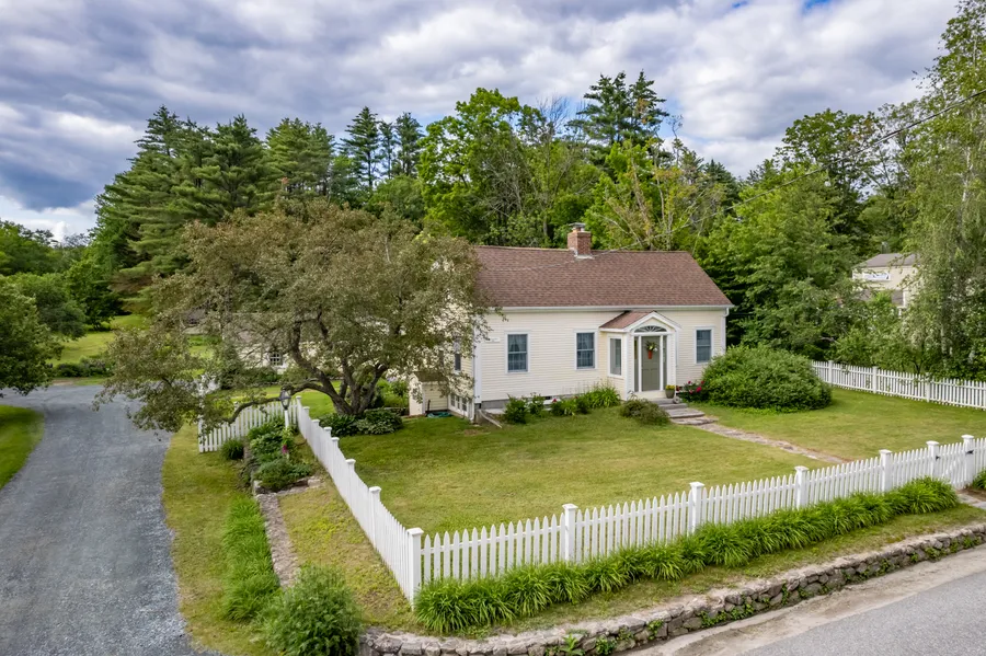 Situated in the heart of Sutton Mills Village, this warm 3 bedroom 2 bath Cape is a quintessential New England oasis. Nestled on Kings Brook, this 5-acre parcel has a nice level open yard, perfect for gardening and farming animals. A stone's throw from the Sutton Elementary School, Sutton Free Library, and Town Hall. Upon entering the main door, enjoy the bright sunroom with access to the backyard. The kitchen has nice views of the Cherry tree in the side yard and a cozy wood stove. The charming open living room has beautiful wood floors, plentiful storage space, hand-planed wooded wainscoting, and a stunning oversize brick hearth fireplace. The primary bedroom has a walk-in closet, and bright natural light and is across the hall from the large full bathroom with a granite top double vanity, stackable laundry, and tiled tub shower. Upstairs, two bedrooms with lovely hardwood flooring and a half bathroom. The addition could be used as a bonus room, bedroom, office space, or accessory dwelling unit. It features a propane stove and access to the back deck. Outside, the land has lovely stonewalls, garden space with blueberry bushes, apple trees, and a fenced-in yard perfect for your furry friends. Less than 10 minutes to Kezar Lake with access to Wadleigh State Park, Kearsarge Regional Middle and High School, and Interstate 89 for an easy commute to Concord or the Upper Valley. Delayed showings begin on June 24th at the Open house from 11 AM - 2PM.