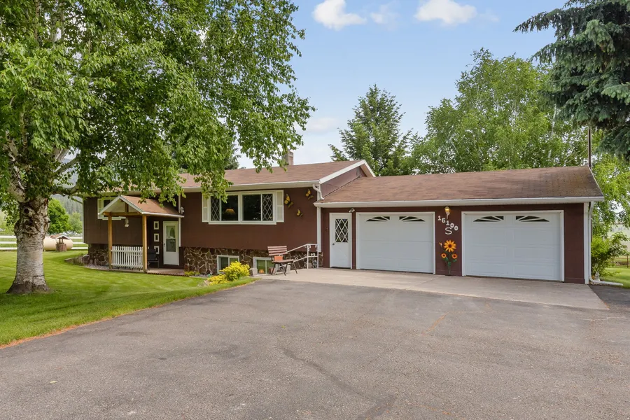 Immerse yourself in the unique charm of midcentury modern architecture with this iconic home nestled on 5 pristine acres that embraces the distinctive elements of the '70s. As you approach the house along the tree-lined asphalt driveway, a sense of arrival washes over you, setting the stage for an extraordinary experience. Surrounded by a meticulously landscaped yard and lush pasture, this home is a serene oasis that beckons those seeking a countryside lifestyle. The mature birch and pine trees, accompanied by two apple trees, lilac bushes, and blooming peonies, create an idyllic backdrop against the backdrop of neighboring hay fields. Nature's beauty seamlessly blends with the architectural vision, ensuring a peaceful setting that awakens a yearning for the tranquility of rural living. Descend into the basement, where a delightful playroom awaits, evoking fond memories of a bygone era. This space provides endless possibilities for entertainment and relaxation. A delightful surprise awaits as you explore the property—the vintage red rotary phone, a charming relic of the past, remains as a nostalgic memento of the home's rich history. Notably, a new gas forced air heating system was thoughtfully installed in June 2023, ensuring modern comfort while preserving the timeless ambiance of the home. For those with a penchant for hobbies or storage needs, the outdoor area presents two expansive storage spaces measuring 30x30 and 30x60. Whether you require a workshop, RV storage, or room for recreational vehicles and farm implements, these spaces accommodate it all. Additionally, the barn features a wood stove, a walk-in game cooler, a loft, and is wired for 220 amps—an ideal space for pursuing creative endeavors or embarking on personal projects. The field perimeter is secured by wire netting fencing, while vinyl fencing with wire netting surrounds the home and driveway, offering both privacy and safety. Two stock tanks provide additional convenience, enhancing the functionality of the property. The septic system was pumped in 2022. To complement your rural lifestyle, the Frenchtown Valley Ditch provides water for irrigation at an affordable rate of $100 per year, ensuring the surroundings remain vibrant and flourishing. Indulge in the allure of midcentury modern architecture and relish the harmony of nature and design that defines this extraordinary home. Come and experience the magic of this timeless property, where the spirit of the '70s is alive and well.