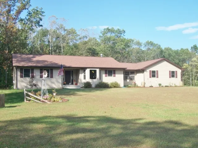 Custom-built 4 Bedroom, 3 Bath, County Home sitting on 17 +/- Acres. Main level offers large great room with wood burning fireplace, kitchen and dining - open concept, 2 bedrooms 2 bathrooms, laundry and breezeway with tile. Lower level has walkout, kitchen, dining, 2 bedrooms and family room. All appliances included. Geothermal heat, 2 car attached garage and 2 car detached garage. Large deck runs length of house. Hunt out your back door! ALL OFFERS WILL BE ENTERTAINED.