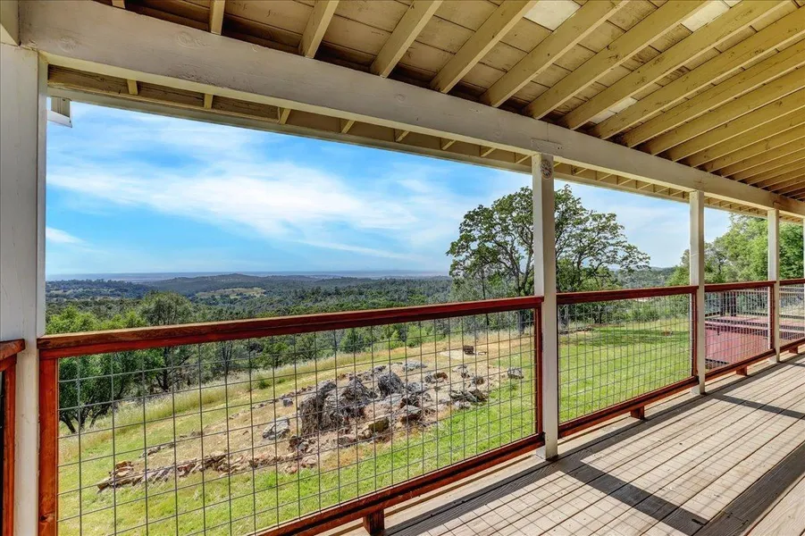 Discover your own PANORAMIC oasis with 180-degree VIEWS, including a stunning vista of Camp Far West Lake. Only 15 minutes from Lake of the Pines shopping, this custom one-level home offers convenience without sacrificing serenity. Remodeled with bamboo and tile flooring, it features a NEW Owens Corning ROOF, GUTTERS, ridge vents, and SOLAR which is leased No HIGH PGE BILLS. Embrace the open great room concept, complete with a spacious kitchen, breakfast bar, and prep island. Large Living and dining area with an Abundance of wood-cased windows framing the extraordinary views, while the extensive deck with spa invites outdoor entertaining. Enjoy the convenience of the chicken condo, and fenced garden on the ample, LEVEL 5 acres of usable land. NID irrigation feeds a charming pond, offering the potential for a sustainable farm. Equestrian enthusiasts will delight in the space for barns and...