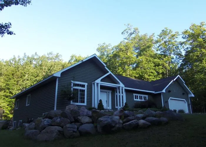 Find peace and serenity; "on the rocks" in Hazelhurst, the quiet side. Seclusion; near the end of the road; nestled on 5 acres in a superb location. Blacktopped driveway leads to the professionally landscaped grounds. Fashionably designed: 8/12 pitched roof, bump out eaves, pillared front entry, freshly painted spruce wood siding and white cedar trim around the designer vinyl windows. Sprawling ranch floor plan boasts soaring ceilings in every main floor room. Chef's kitchen attributed by stainless steel appliances, huge island, excess of maple cabinetry, tile backsplash and a GE Monogram hood. Abundance of character: cement plaster walls, oversized rooms, spacious bathrooms with walk-in tile showers, and quality flooring. Interior and exterior sound system, exercise room, 4 walk-in closets and spacious family rooms. Exterior features: ATV trails, wooded/rolling terrain, walking paths, s...