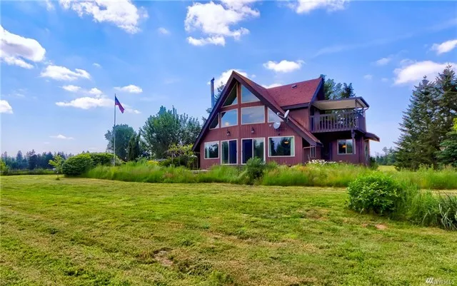 Gorgeous Roy propertyready for your creative touch! The best of nature, 5.12 acres w/open pastures & some wetlands, home to cranes & singing frogs! Open 2-story floor-plan w/ample sunlight, high efficiency CR Boger windows w/lifetime guarantee and more! Detached garage w/shop area & garden room. Enjoy the patios, BBQ area, grapevine terrace & peek a boo mountain view! Wood burning stove, heat pump, 7,000 kw hookup w/safety switch. Gated w/electric fence & raised bed garden areas. A must see!