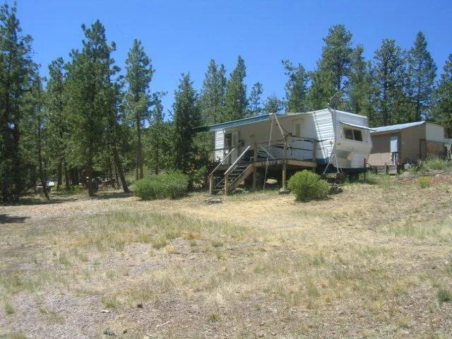 This 5 acre parcel offers tall timber, high peaks, and tranquility. South border of this acreage adjoins National Forest and it is completely fenced. Newer 26 ft. Tahoe travel trailer with slide-out and deck on the front, 20 ft. Holiday Rambler travel trailer, and a small travel trailer create room for family or friends. There are also 2 outbuildings and an included Jeep and generator. In-house well, electric, septic, phone, and DSL internet in place. Property is neat as a pin.