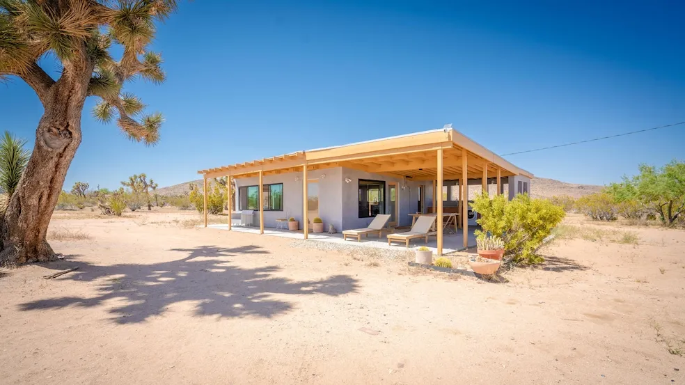 Seller Financing and rate buy downs available! This renovation unfolded meticulously, from demolition to new roof, plumbing, electrical systems, HVAC, bath, kitchen, concrete pour, and windows--all with legal compliance. Materials were handpicked for durability, from custom cabinets to natural wood, porcelain, and quartz stone. Adding allure are discreet private driveways, integrating seamlessly into the landscape and a 150+ year old Joshua Tree. Mornings reveal sunrise vistas while evenings bid adieu with breathtaking sunsets. The sellers infused intention into every facet of design, creating a space where one can lose themselves in gardening or reading against a backdrop of distant snowcapped mountains. Enjoy incredible stargazing in the Mesa. It's a haven of tranquility yet only minutes from the Farmers market, Pappi's concerts, the Noah Purifoy Foundation, and our beloved Joshua Tree state park.