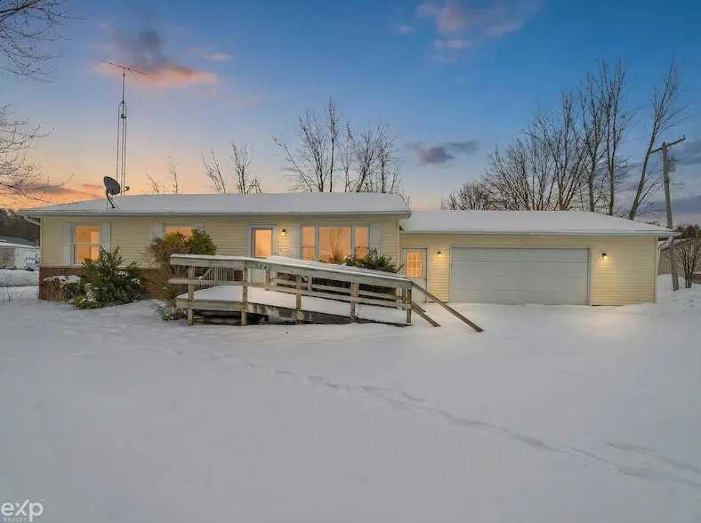 Looking for a ranch home on acreage in Croswell, Michigan under $250K? This is the one buyers have been waiting for. Situated on 5 beautiful acres in the desirable Croswell-Lexington School District, 5840 Mortimer Line Rd offers 1,112 square feet of comfortable single-level living with room to grow, roam, and breathe. Built in 1980, this well-maintained 3-bedroom, 1-bath ranch features newer roof, newer furnace, and updated windows, giving buyers confidence in the big-ticket items. The spacious kitchen opens to a rear deck overlooking the property, creating the perfect setting for morning coffee, summer BBQs, or peaceful sunset views over your own acreage. The living room is bright and inviting with large windows that bring in natural light and showcase the quiet country surroundings. The attached 2-car garage adds everyday convenience, while the LP gas forced air furnace is already prep...