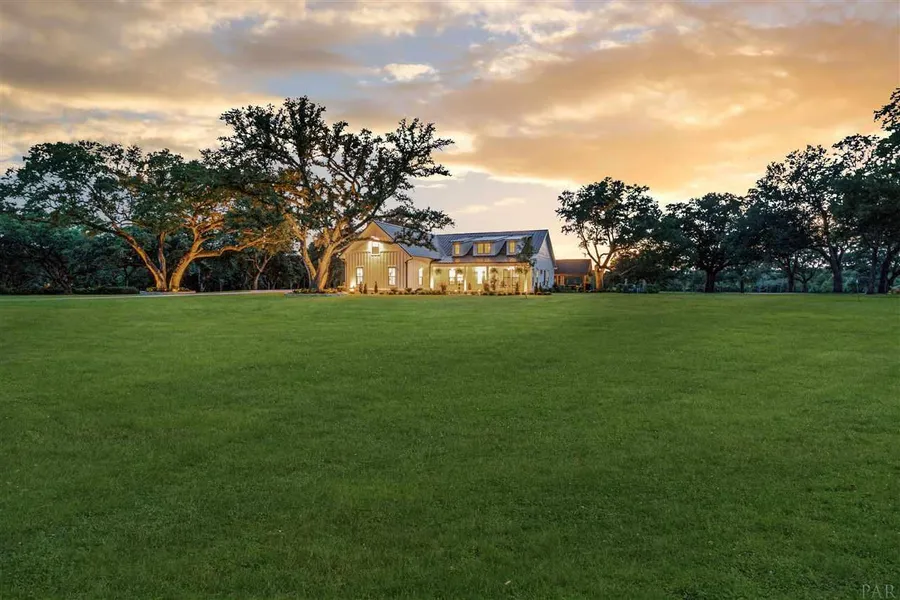 Custom built 5 bedroom, 4 bath farmhouse on a picture-perfect 5-acre manicured property with a spring-fed stocked lake. Arriving at the 16-foot electronic iron gate entrance to your new home, you will be amazed. Walking in the front doors, you will be greeted by the high ceiling, shiplap detailed walls with a view of the pool and lake. The open concept gives this home a welcome feel. This kitchen is a dream with tons of storage, dual ovens, icemaker, a walk-in pantry, and bar seating overlooking the living room with a fireplace focal point. The master retreat is built for relaxation. Awake each morning with a serene view of the lake. The master bath features a tile walk-in shower with rain head, body sprayers, and a bench. Dual custom closets and built-in jewelry box creates a place for everything. Each of the 3 main level guest rooms has walk-in custom closets. The upstairs area can be used as a 5th bedroom, additional living, playroom, man cave, or anything else you desire. There is also an additional full bathroom and office upstairs. Laundry is a breeze designed for function laundry room with storage and folding area on quartz counters. Oversized impact-resistant Low-E windows (custom electric shades) and high-end craftsman detail allow flowing natural light. Exiting the large glass doors onto a paver deck surrounding a 20x40 automated gunite saltwater pool with built-in sundeck, you have a sense of peace as it offers a view of the spring-fed lake. This home is loaded with home automation, security systems, & home audio. This home is a beauty resembling the dreams of Pinterest. Still, it will also give you peace of mind with mold prevention treatment (50 yrs), Gas tankless & hybrid w/heaters, solid doors, standing seam metal roof, 2x6 exterior walls, 22 kw generator, stem wall foundation, and Hardie exterior. Energy efficiency with 17 SEER dual-speed HVAC and spray foam insulation attic & walls. *Additonal Acreage available*