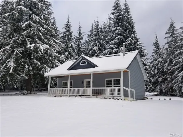 COZY and PRIVATE! Newly-built 1bed/1bath country cottage on 5.17 acres with a huge shop! This home boasts extra tall coffered ceilings, large bedroom, heat pump/AC, wired for generator, two sets of French doors, one leading from master onto private deck with hot tub that looks out over the backyard/pasture area, the other onto aggregate stone patio. Shop is wired for 220 w/ unfinished loft space, circular drive, gated entry and cross-fenced for animals! Room for expansion with 3bed septic!