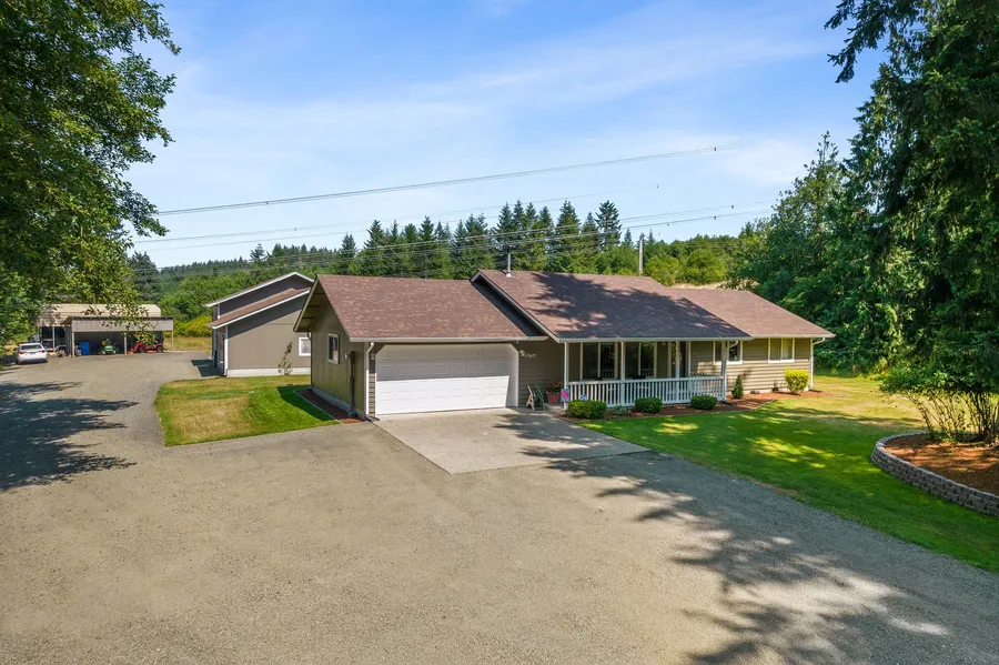 Charming country living! This is your forever home tucked away on 5 acres in a quiet setting! Rambler + sports court, large 3 bay SHOP (30 x 60) is plumbed w/ work bench and cabinets, a variety of fruit trees, RV parking w/ power hookup & outdoor fire pit! Primary bedroom with territorial views features a private en-suite. You'll love the vaulted ceilings in the living room and the darling craft room! Peaceful back yard features a unique motocross training track, endless fun for ATV, dirt/ BMX enthusiast. Freshly painted with newer roof, this home is meticulously maintained and ready for you to start making lifelong memories. Tumwater Schools!