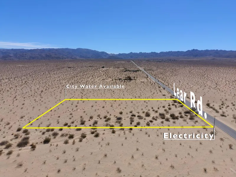 Twentynine Palms Water District (760) 367-7546 TPWD water line runs along the W (LEAR Ave) boundary of your property North & South.