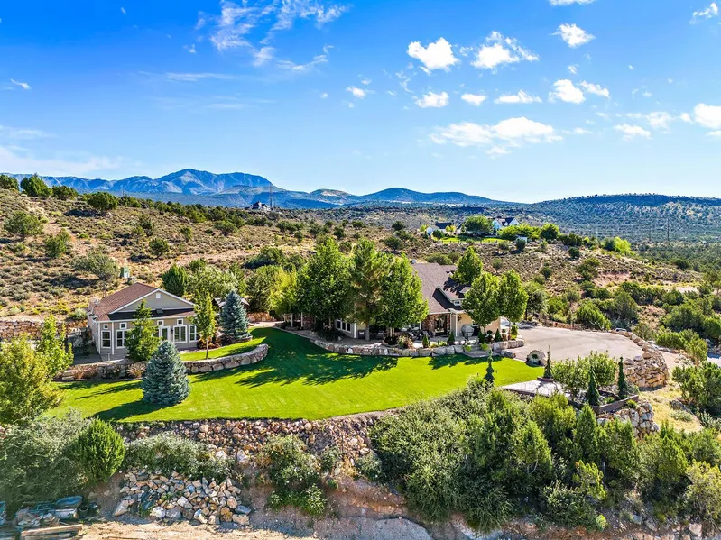 Nestled atop a picturesque hill on a sprawling 5-acre parcel, this exceptional estate offers a rare blend of luxury, privacy, and breathtaking views of Snow Canyon State Park and its stunning surroundings including a Volcano. Meticulously remodeled from the inside out, this home is a masterpiece of modern design and boasts an array of lavish features and finishes that will take your breath away. A securely gated entrance leads up a long, winding private drive lined with beautiful rock walls setting the tone of exclusivity and tranquility. Impressive 15 foot high iron doors open, as you step inside the interior reveals a spacious and open floor plan that showcases the natural beauty that surrounds it. The complete interior remodel has transformed this home into an elegant haven, ideal for both relaxation and entertainment.