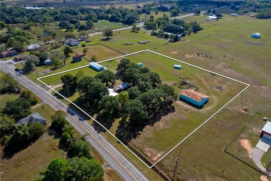 Offering 5 acres of picturesque land in historic Washington, TX, this fabulous property is the perfect blend of rustic allure and modern comfort. Surrounded by 19 majestic oak trees, the home provides a peaceful retreat with timeless charm. In 2018, the home underwent a thoughtful transformation....walls were removed, beams were added, & an open-concept floor plan emerged, creating a spacious and inviting atmosphere. The kitchen features beautiful reclaimed wood accents, custom shelving nooks, and a cupboard style pantry. Sleek quartz countertops, crisp white subway tile, and decorative tile flooring bring in modern elements, while the natural wood floors and tongue-and-groove ceilings remain true to the home's original charm. Patterned tile flooring in the bathrooms instantly makes a bold statement and elevates the space. Energy-efficient vinyl windows throughout the home frame impressive views, bringing in natural light and the beauty of the outdoors. The exterior is just as impressive with its 3 covered porches. A 3,000sf barn sits on a concrete foundation and has electricity with pipe fencing, cattle pens and concrete water troughs nearby. The 61x21 tool barn provides both enclosed shop space and covered parking for farm implements. The versatile carport offers room for vehicles but is currently used as outdoor living space for entertaining and cooking al fresco. Additionally, this property has a well for water & an ag valuation in place! A true gem!