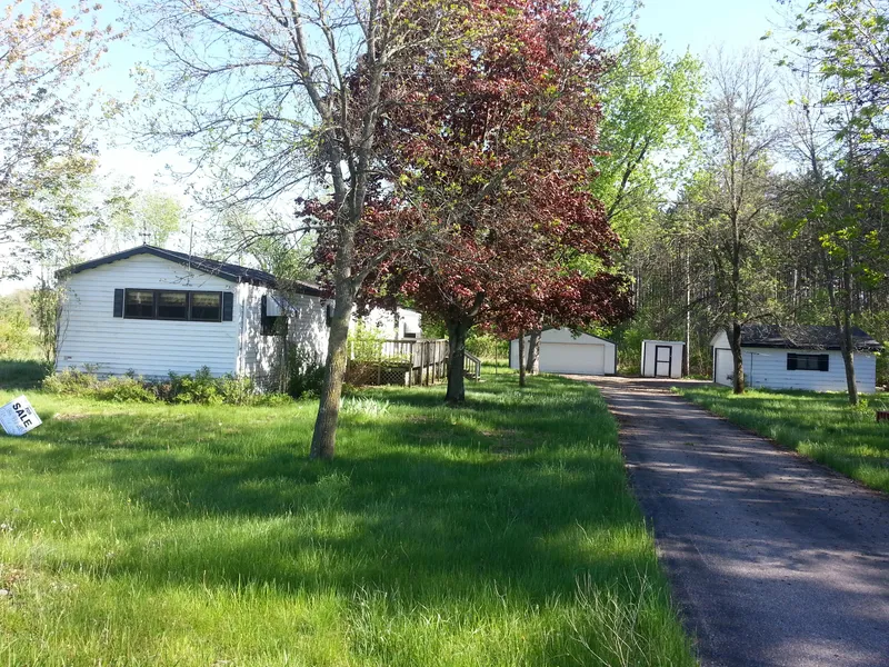Waupaca address but located across the border in Waushara County. Five acre parcel has 3 bedroom, 2 bath, mobile home plus 2 larger garages. Well and septic on property. Inside find gas fireplace, vaulted ceilings, and master suite area for nice living spaces. Great deck across front of home plus blacktop drive provides a nice looking country package. Property is on dead end road with few neighbors for a real sense of serenity. Lots of wildlife to enjoy including big bucks and bear sightings along with many good fishing lakes nearby. Use property for weekend retreat or year'round home with 1200+ sq feet of living space.