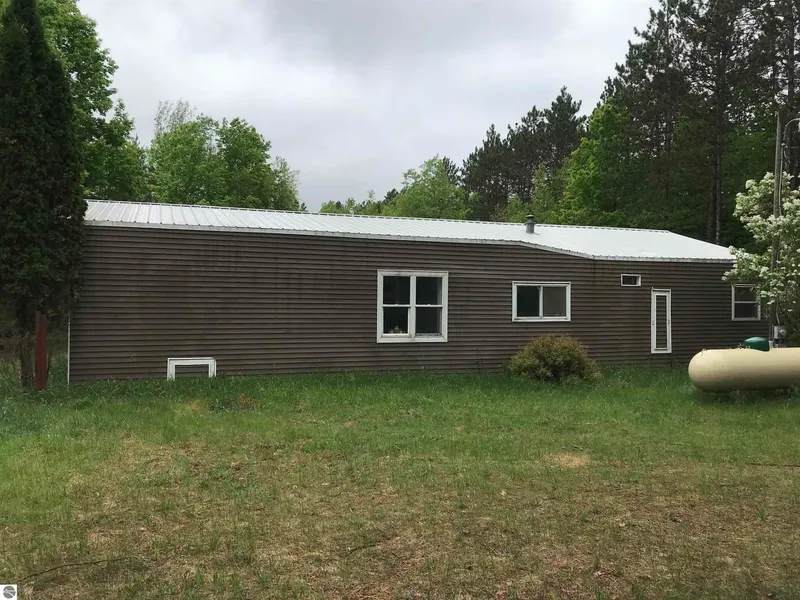 Wonderful wooded setting on 5 acres surrounded on two sides by hundreds of acres of state land. This older manufactured home features 3 bedrooms, 1 bath, metal roof, covered back deck, propane heat, and a storage shed for the tools, equipment, and toys. Nicer homes surround the house. It is a fixer upper being sold as is. Cash or portfolio loan accepted. Ideal for handy person, hunters, or starter home buyers.
