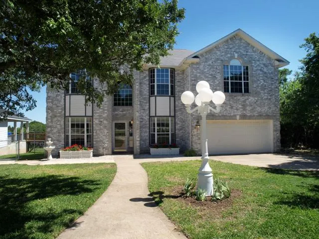 Custom home nestled among oaks on 5 acres w circular drive.5 bedrooms,4.5 bathrooms.Mighty Mule power gate system.Oversized detached 3 car garage plus attached 2 car garage.Solar heated and cooled swimming pool w/8-12 person spa/waterfall.2 kitchens. Avanza countertops.Bosch dwasher.GE micro and oven.Gas Jenn-aire cooktp.Brkfast bar opns to family room.Butler pantry.Custom cabinetry/generous storage.Oversized wooden deck across back of home to pool house.Gas fplace.Hardwd.Tile.carpet.