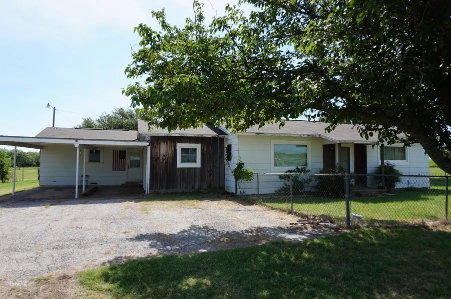 Three (3) bedroom, two (2) baths, two (2) car carport farm home on five (5) acres, m/l (surface estate only) near Olney, TX airport; Two (2) living areas, split bedrooms, ceiling fans and almost new windows throughout; Hardwood floors in the living room (painted), bedroom #2, bedroom #3 and hallway; Kitchen offers ample cabinets, Formica counter tops, breakfast bar,free-standing smooth surface range, refrigerator, dishwasher and vinyl floor; Utility room is situated between the den and master bedroom ensuite; 45' x 33' metal pole barn with a lean-to for equipment storage; 19' x 15' smaller pole barn for storage; Corral; Chain link fence and double gate around house; Perimeter barbed wire fence; Grain silo; One (1) pond; 12' x 12' storage building; Fort Belknap Electric; Baylor Water Supply; In-ground cellar; Septic system; Wooded acreage.
