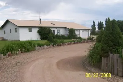 An oversized 2-car garage (approx. 1,991 sq. ft.) is attached. Outbuildings include a 42'x60' shop, and 10'x16' and 12'x24' utility sheds. The property also features a 3-sided shed and pipe corrals and a small feedlot with concrete bunks.