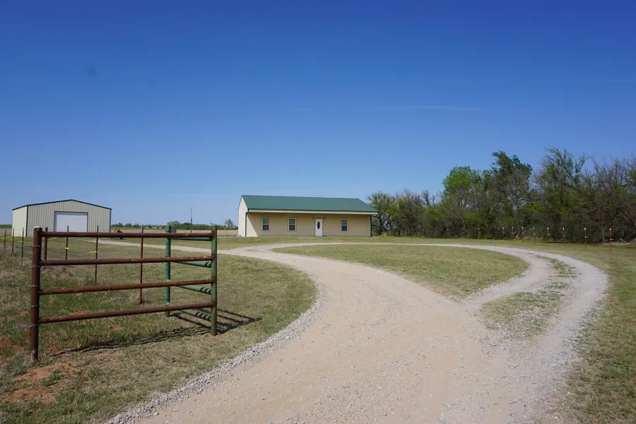 Price Reduced! Enjoy Country Living on this Rural Homestead on 5 acres. Here's your opportunity to own an Energy-Efficient Metal Home, 30X40 Workshop and have a place for your pets and livestock. Property is gated, fenced and has a circle drive for easy access. There is 2.7 acres on the east side of the property beyond the creek for livestock. Home has soy-based, flame-retardant spray foam insulation. Interior is well-maintained and still feels new. Spacious, open concept living/kitchen/dining area. Two large bedrooms. Dedicated laundry room with a water softener hookup. Refrigerator stays.