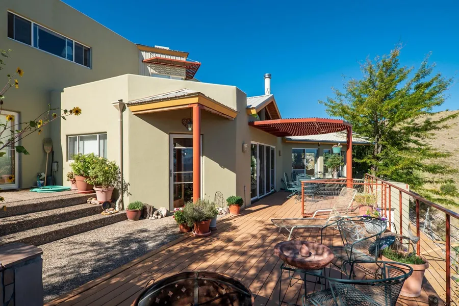 Embark on a lifestyle imbued with sustainability and luxury with this this resplendent home nestled atop an 11.69-acre mesa, offering breathtaking panoramas of surrounding landscape. This stunning off-grid home, designed by the renowned Architect Reynold Radoccia, promises a living experience that's as close to nature as you can get without having to pitch a tent. With a sprawling 2557 square feet of living space, this 4-bedroom, 2-bathroom home sits on a generously sized lot that borders forest service land - your own private gateway to the great outdoors!