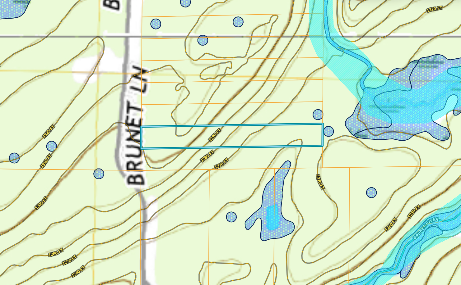 Access: No easement to Brunet Lane (road located on neighboring property)