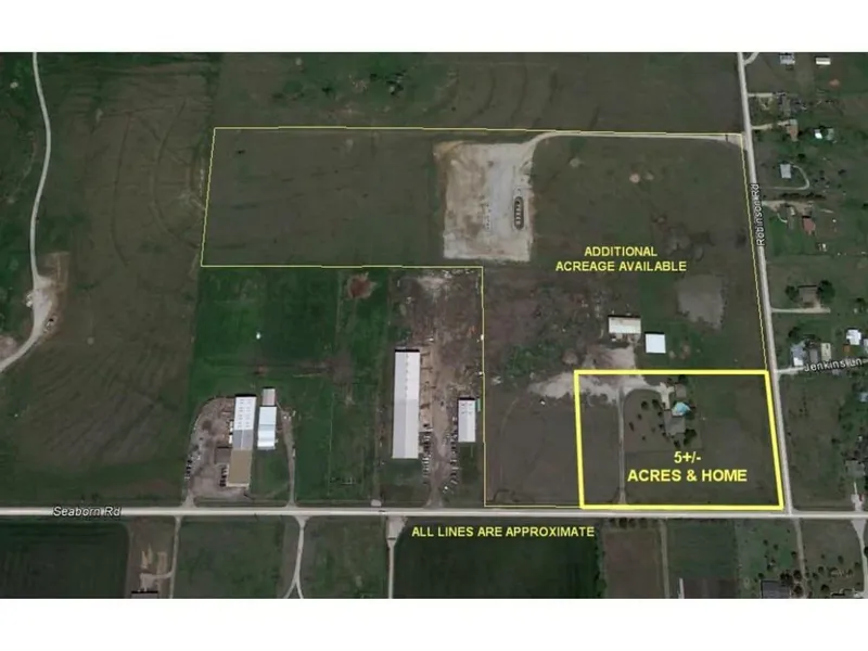 GREAT POTENTIAL! Perfect for your home or business. 5 + or - acres, 2,645sqft home, pool, pool house, pipe fencing, road frontage on Seaborn and Robinson Rd. Easy access to I-35. Property can be subdivided. Buyer to verify all information. This is a subdivision of a larger listing.