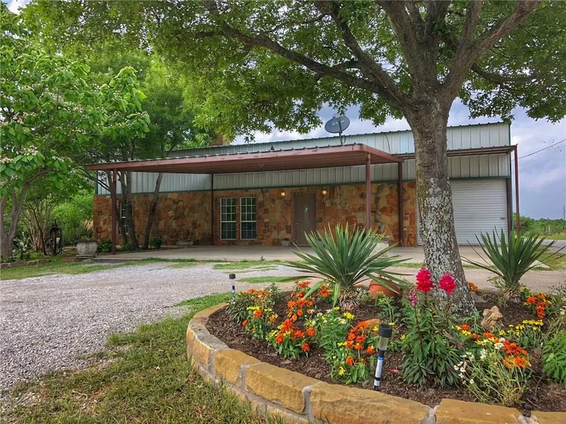 Fantastic country living in a strong steel finished out home just north of Weatherford! Front of property has separate fence for horses or livestock. Home features rock and brick finishes, great country kitchen with dining area. Large garage with tons of storage, room to park 2 large trucks, and space to finishout upper level if wanted. 8x10 bay door on garage. Adobe outdoor oven and BBQ area under covered patio. Sheep pens, chicken coop, and a single wide mobile home for guests. Extra covered parking in the back for RV or boat! Walking thru the sheep pen you can access your back acreage with walking or 4 wheel trails, tons of camping sites, large mature trees and beautiful views and country wildlife! Come see!