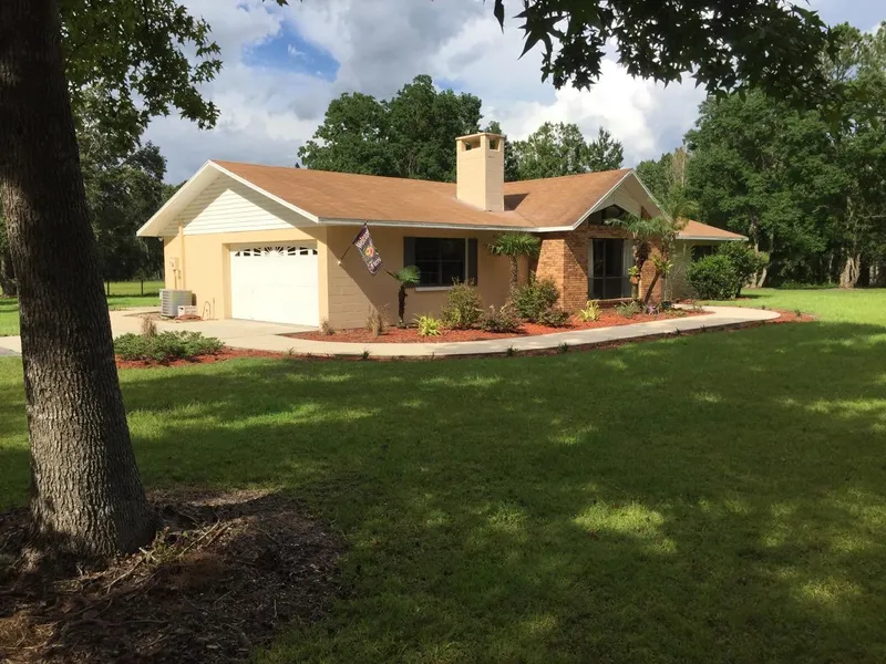 Five lovely fenced acres of country living perfectly located for either a Gainesville or an Ocala commute! Well maintained home ideally situated in a serene natural setting for horse, ranch and organic farm lovers! Improved pasture with loads of grass!! A MOVE-IN READY gem with vaulted ceiling and charming brick fireplace and hearth. Custom cherry built-in display cabinets with glass doors only add to this room's personal style! Saltillo Mexican tile throughout, BALI wooden blinds, designer drapes with decorative wooden curtain rods, BRAND NEW kitchen with stainless steel appliances, granite counter tops, and MORE! This 3/2 home may be just the one you have been searching for!