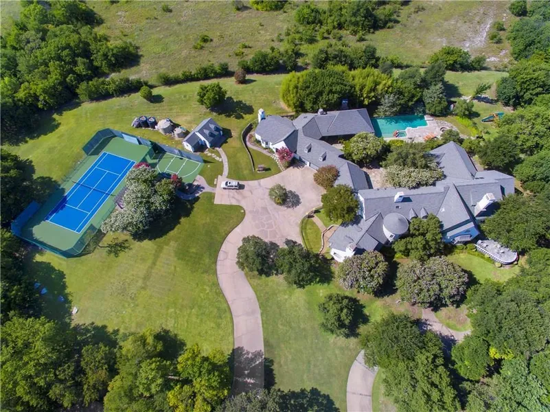 LARGEST RESIDENTIAL PARCEL IN FRISCO! Stately Masterpiece nestled on 10.22 acres. Ideal for discriminating buyers demanding privacy without sacrificing proximity to urban conveniences. Main house is over 10,200 SF, separate guest quarters, event pavilion that seats 80 and comfortably accommodates 350, tennis court, 50,000 gallon pool, numerous park like areas including a wedding alter, multiple ponds and creeks.