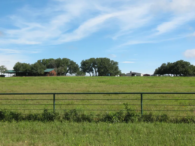 Weather protection for 14 horse stalls. l large double stall. Tack room. 145 foot round pen with attached holding pens. Horse runs all over with room for more. All interior fences are slick wire, cable, or pipe. Storage building or additional covered stalls. And much more.