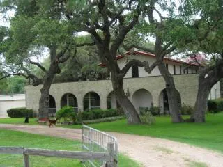 Lovely Spanish style home on 50 +/- acres. Lots and lots of oaks and woods. Extra garage with walk-in cooler & freezer. Sprinkler system. Hot tub. Equipment barn with electricity (60'x25'); 2 sets of working pens with tack room. Woods behind home with small pond. Guest house.
