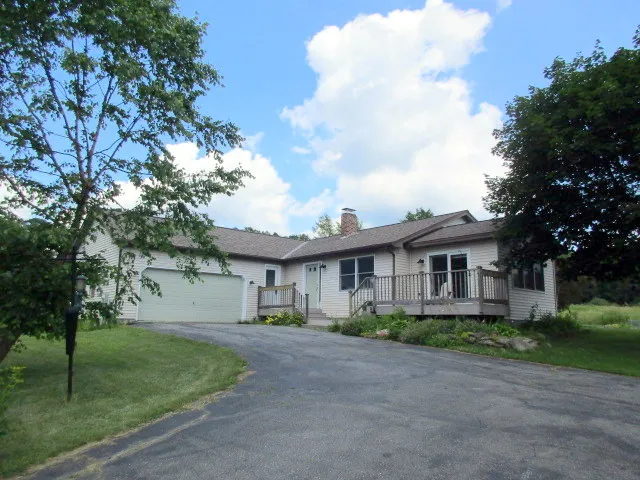 Charming ranch in move-in condition! Set back off the road on a private lot with 50+/- acres to roam. So country yet minutes to town. Fields & woods galore! Features an open layout, beautifully updated kitchen with island done in approximately 2010. 4-season sun room with vaulted ceilings & a skylight. Master bedroom with full bath. 2 decks back and front. This home is not a drive-by!