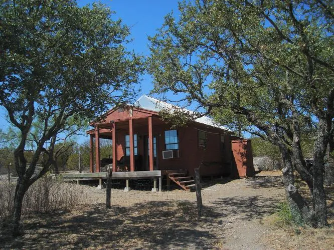 This pretty place with game fence, located about 12 miles from Ft. McKavett, has a renovated cedar cabin with master bedroom, upstairs loft, full bathroom, living area, and fully-equipped kitchen. The cabin is tongue and groove cedar inside and out with 2 x 5 walls and insulated glass windows. There is a large, newly redone covered porch. In back is a a covered work shop/golf cart parking area. The well has a new pump and pump house. There are a deep freeze, a New Braunfels smoker, 2 box blinds, and 2 game feeders on the place