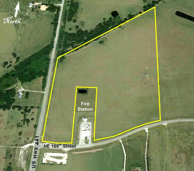 Fenced, improved pasture with cattle working pens and shallow 10" well. North boundary of property is a small creek and somewhat picturesque. Parcel is located at the corner of US Hwy 441 North and NE 168th Street and surrounds a fire station.