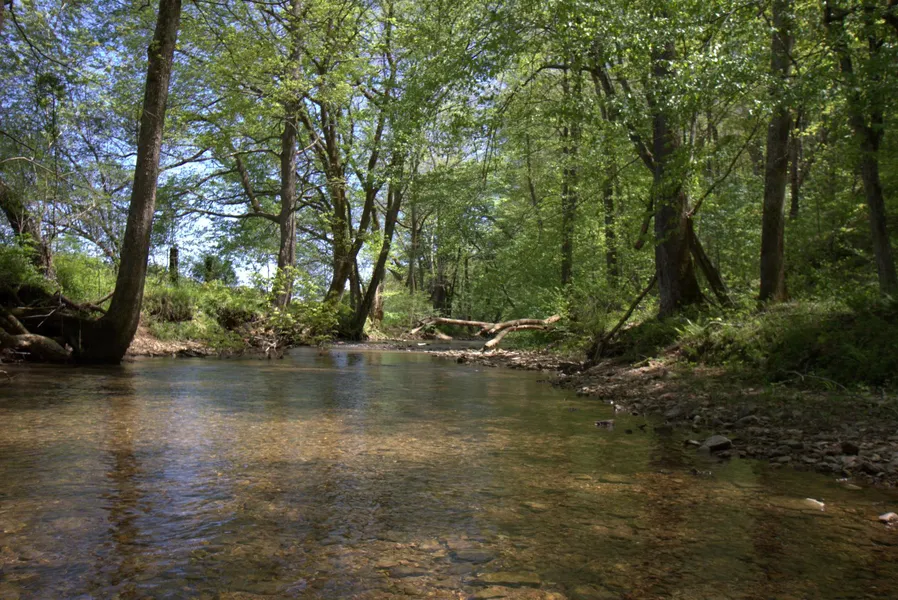 Beautiful property with the babbling Leatherwood Creek flowing through the middle. Good mix of woods and pasture. Scenic trail through the woods to a very private pond!