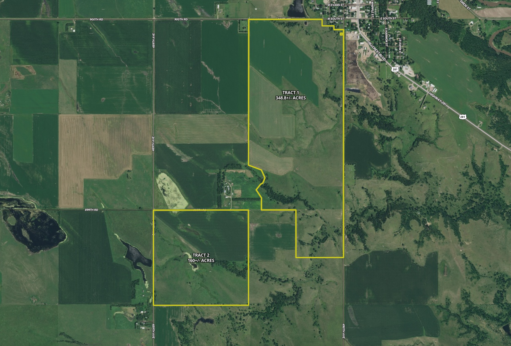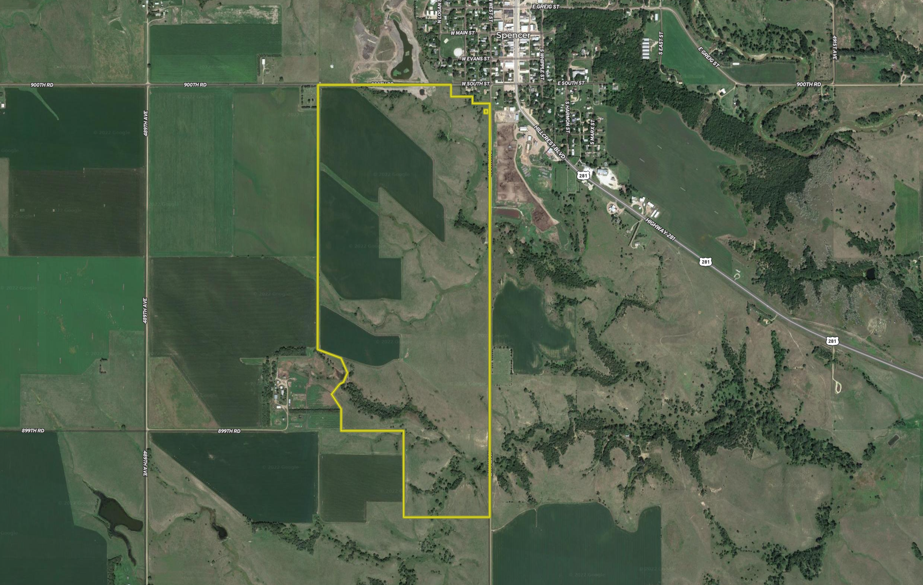 348.8+/- acres pending survey with 109.41 acres tillable with balance in pasture and hay. This well maintained combo farm would be a great addition to any operation or portfolio. Great access from the north and east. The pasture and fence are in good condition and cedar trees have been maintained. Rural water is piped to the pasture and the pasture is currently divided into two units. The mostly flat farmland is currently in alfalfa and primarily consists of Onita and Reliance Silt Loams.