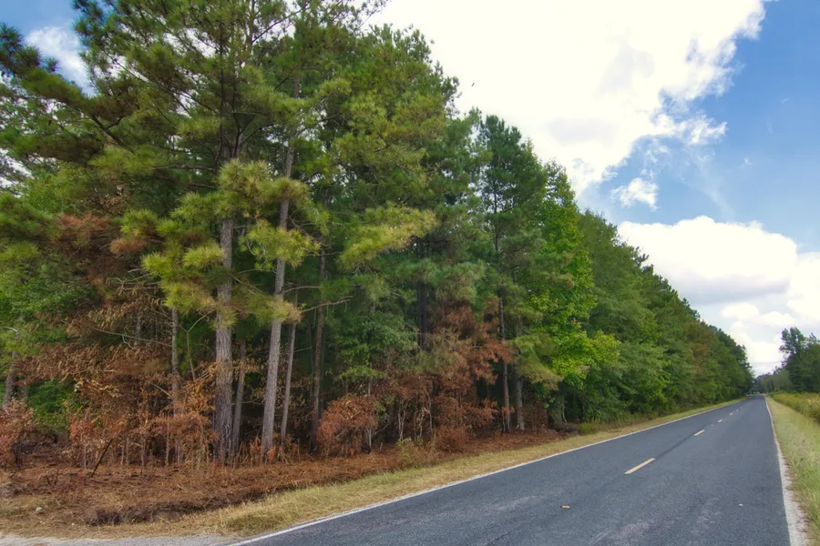 80%+ manageable pine acres, all weather logging, paved and dirt road frontage, over 30 acres of 46 year old pine, frontage on ?creek/river
