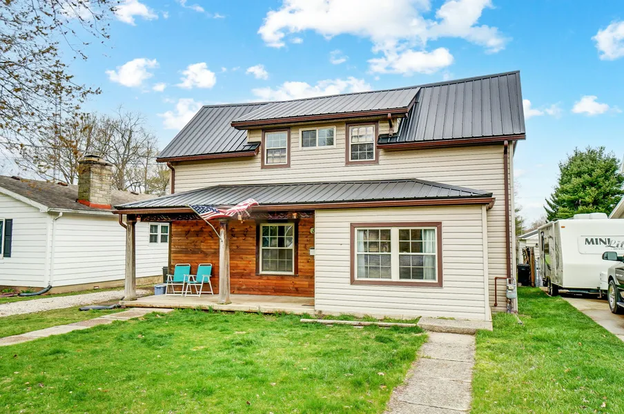 This hard-to-find 4 (or possibly 5) bedroom home offers space, comfort, and convenience in a prime location! The two-story great room provides a grand living space and includes a convenient half bath nearby. The first-floor primary suite features a walk-in closet, an ensuite bath with a soaking tub and stand-up shower, and direct access to the backyard. The kitchen is a standout with beautiful cherry cabinets, ample storage, and plenty of counter space. The functional laundry/mudroom offers easy exit to the large backyard. Need extra space? The fifth bedroom could easily serve as a home office, playroom, or hobby space. Additional highlights include a newer metal roof for peace of mind and brand new flooring in the entry/kitchen/dining areas. Walkable to Melvin Miller Park and the high school, this home offers the ideal blend of space, updates, and location. Don't miss your chance—schedule your showing today!