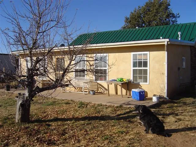The Wild West With Modern Amenities!! Located east of Lake Huerfano (Orphan Lake) this Ranch is at the head of Canyon Largo. The preponderance of theproperty is open “llano” country with abundant ground cover of native grasses. In the canyon there are pictographs of its ancient inhabitants. This ranch haspinon, ponderosa pine, and juniper trees. To the west, 37 miles away, one can see the beautiful Sangre de Cristo mountains stretching from north to southon the horizon. This house is one of the “Green”Houses because it is located off the grid, but the solar panels provide all the electricity needed, and it has several back upsystems in case of a cloudy day. The house is a blend of old and new. It has hewn logs that are approximately 130 years old, but, it has all the amenitiesneeded for creature comforts. Between the barn and the house is a well tended garden that provides natural food for healty eaters.
