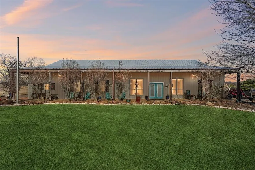The exterior continues the same language of durability and design. Metal siding and a metal roof were selected for longevity and low maintenance, ensuring the home performs as beautifully as it presents. An attached two-car garage supports practicality without compromising architectural integrity.