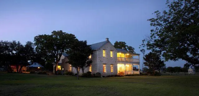 EXQUISITELY restored 1906 Oehler Family Homestead w/additions on 52 ac.offers distinctive craftsmanship in every inch of the 3,865 s/f home. Much of the original home has long leaf pine floors,beautiful wood trim, bead board ceilings and exposed rock walls. 2-story front porches provide views to Cain City & beyond.Delightful master suite looks onto a private sanctuary garden and a rock patio in the side yard. Large fenced professionally landscaped yard has sprinkler system. Orig. bldgs include rk tank house w/cellar and orig.barn, home for the Oehler family while building main house. Log/rk dogtrot bldg has 2 rooms & roofed area in back which could be enclosed. Pool(3-5.5')& equipment was refurbished in past 3 yrs.Rustic 20x30 Pool house offers storage & bath w/shower. Shed(45x48)has room for travel trailer storage or for livestock. Connected is floored workshop w/water & elect. 3 wells ranging from 3-120 GPM service property. Coastal field. Over 1000 ft Pedernales River frontage.