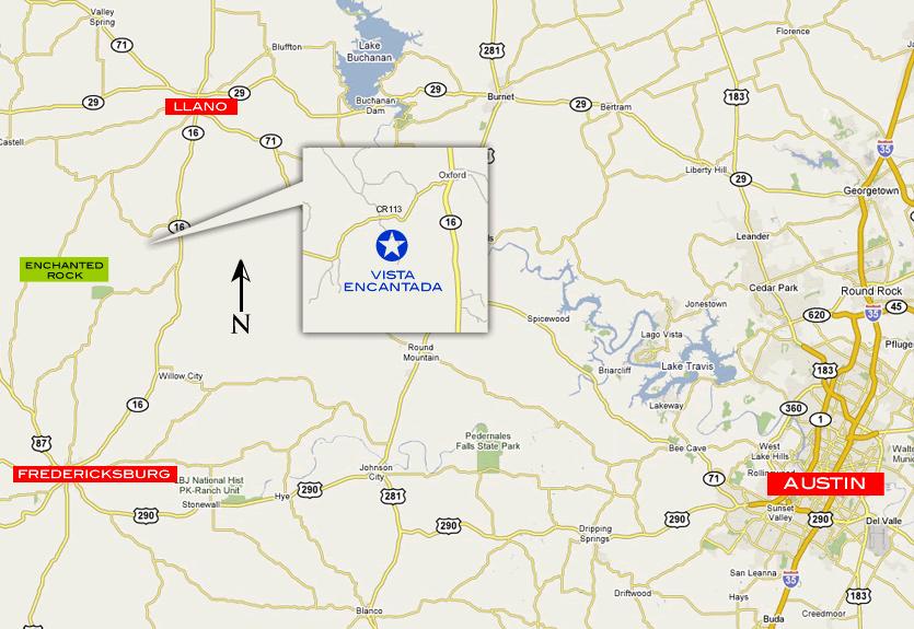 Research Parcel Information25 miles north of Fredericksburg or 10 miles south of Llano on State HWY 16, to CR 113. West 2 miles to the Vista Encantada gate on the left.