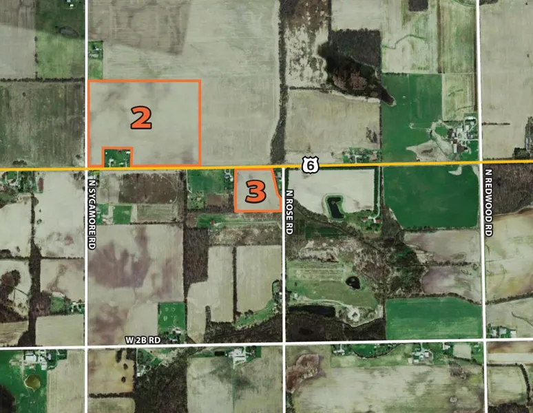 General Location: Approximately 2.5 miles north of Tyner. T#2: NE Corner of Hwy 6 and Sycamore Rd. T#3: SW Corner of Hwy 6 and Rose Rd.